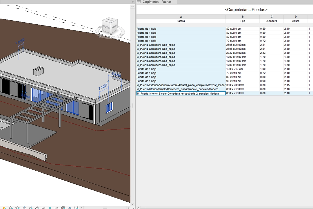 En este proyecto de vivienda unifamiliar desarrollamos un modelo BIM que incorporó información detallada como costes y proveedores de carpinterías. A través de tablas de planificación, estos datos se utilizaron directamente para calcular presupuestos más precisos y reducir imprevistos.
