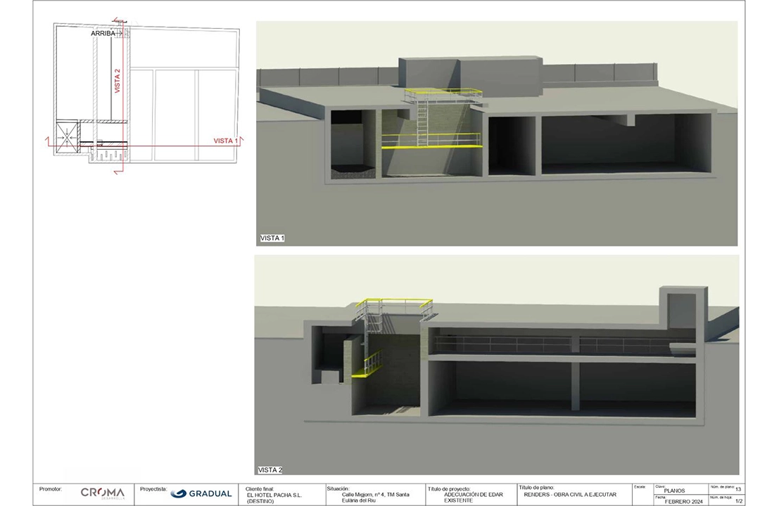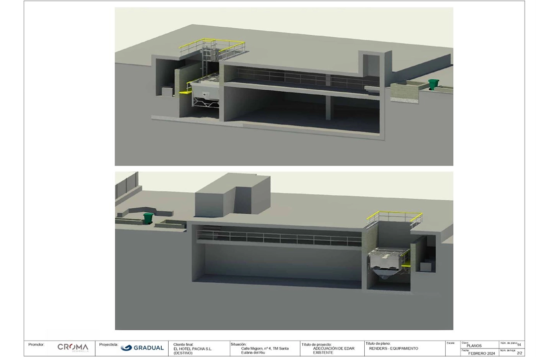 El proyecto consistió en la adecuación de la Estación Depuradora de Aguas Residuales (EDAR) del Hotel Destino Pacha, ubicada en Santa Eulària des Riu, Ibiza. La intervención permitió optimizar el ciclo integral del agua dentro del complejo turístico, garantizando el tratamiento adecuado de los efluentes generados y su posible reutilización según normativa.